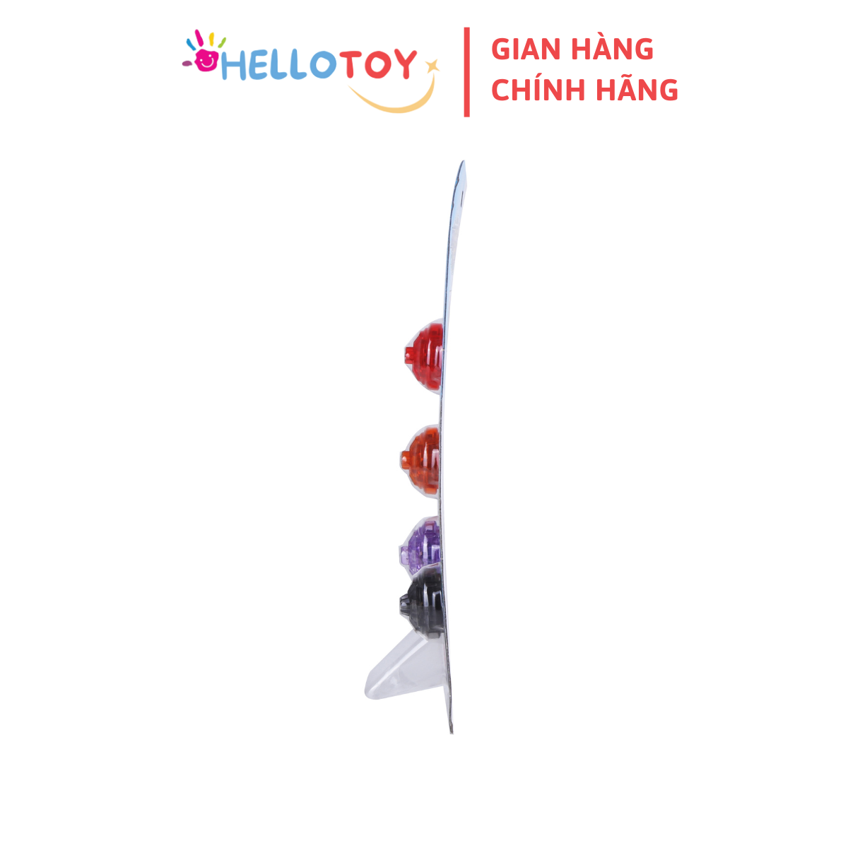 Con quay trong suốt có thể thấy được mọi linh kiện và đèn LED bên trong. Con quay tích hợp đèn ở 3 cánh, mỗi cánh có 3 màu đèn đỏ, xanh dương, xanh lá,