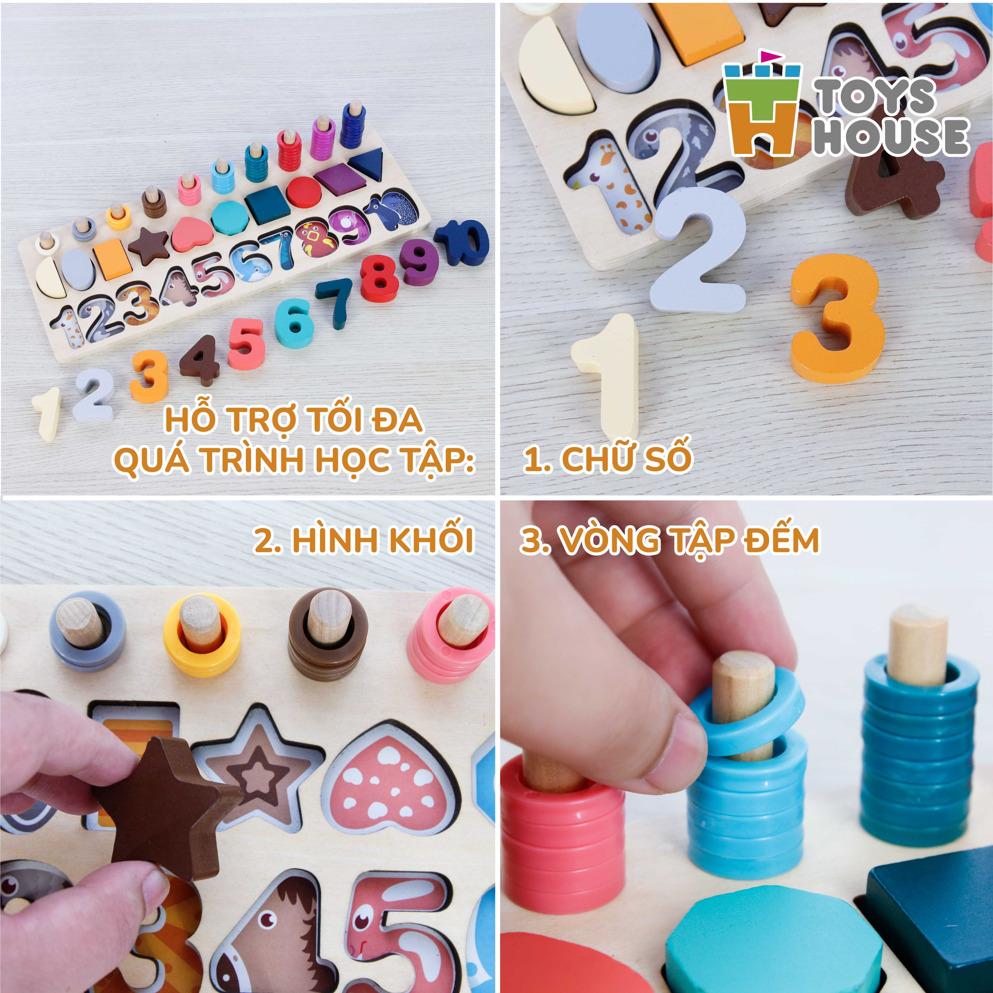 Đồ chơi gỗ lắp ghép Toyshouse 574 cho bé, bảng học chữ số, hình khối và tập đếm giáo dục sớm cho trẻ Đồ chơi ghép số 3D thông minh Toys House sẽ là một