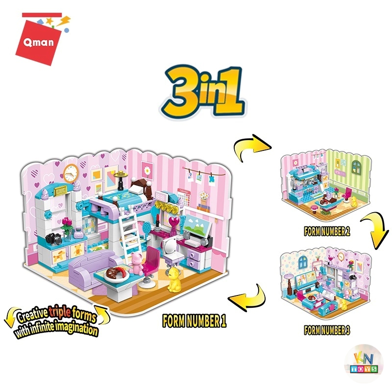 ✨Đồ chơi lắp ghép,xếp hình Qman 4801: Phòng của bé gái