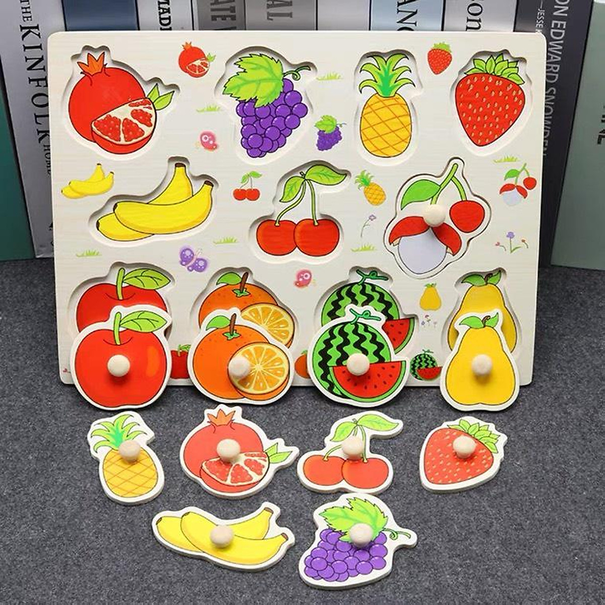 ✨Đồ Chơi Trẻ Em - Đồ Chơi Xếp Hình - Combo 6 Bảng Núm Gỗ Cho Bé (Trái cây, Rau củ, Chữ, Số, Thú rừng, Thú biển)