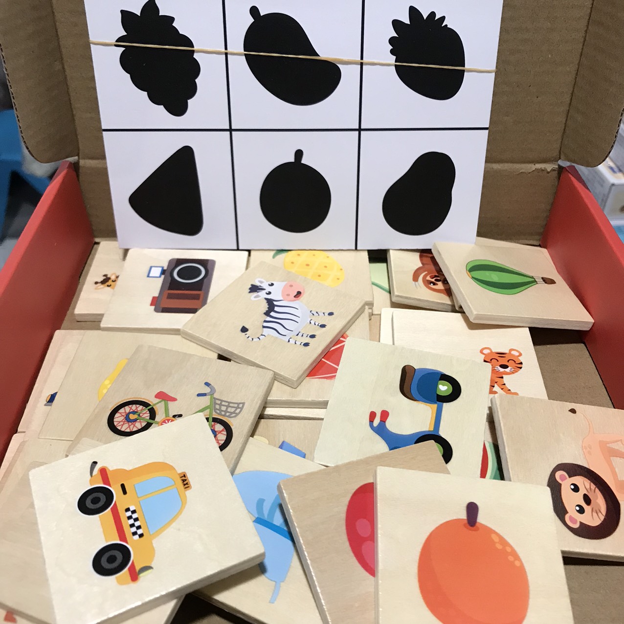 - Ưu điểm sản phẩm -Trò chơi kết hợp bóng tối, thích hợp cho trẻ em đang độ tuổi phát triển, cũng là một trong những công việc hỗ trợ giáo dục mầm non Montessori cổ điển. Nó rất hữu ích cho việc quan sát thị giác, sự tập trung, tính kiên nhẫn và khả năng viết tay của trẻ. Nhiệm vụ của bé là tìm những hình thẻ gỗ vuông tương ứng với bóng đen in trên thẻ và đặt vào đúng ô đó. Để chơi được trò chơi này Bé cần tập trung, quan sát, ghi nhớ hình ảnh, sau đó liên tưởng đến hình ảnh giống hình in bóng hình mới có thể hoàn thành được hết các bảng. Qua đó Bé rất được phát triển kỹ năng, tư duy, phản xạ. ----- Những lợi ích của trò chơi Matching- ghép hình cho bé: -Kích thích và phát triển tư duy logic và kỹ năng giải quyết vấn đề -Phát triển kỹ năng vận động tinh -Phát triển các giác quan của trẻ (Xúc giác, Thị giác, Thính giác) và nâng cao khả năng phối hợp giữa tay, tai và mắt -Kích thích khả năng khám phá -Rèn luyện khả năng tập trung, tính kiên nhẫn -Phát triển kỹ năng giao tiếp thông qua tương tác Mẹ – Con -Phát triển cảm xúc (Yêu thương, Hạnh phúc, Chiến thắng) -Kích thích sự thể hiện -Phát triển tình cảm, gắn kết mẹ con trong quá trình chơi -Phát triển ngôn ngữ cho trẻ. -Phát triển kỹ năng kể truyện sáng tạo cho con -Phát triển khả năng phán đoán cho con -Phát triển khả năng tưởng tượng cho con -Phát triển khả năng chụp hình ghi nhớ -Phát triển trí nhớ không gian cho con -Phát triển khả năng ra quyết định, lựa chọn -Giúp con hiểu khái niệm phân loại và thực hành các bài tập phân loại à vô cùng nhiều giá trị khác nữa bạn và con sẽ nhận được