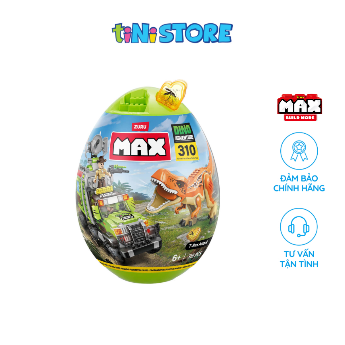 1. Tên sản phẩm: Đồ chơi trứng lắp ráp Zuru Max Build More 310 mảnh 2. Thương hiệu: Max Build More 3. Mã sản phẩm: 83155 4. Chất liệu: Nhựa ABS, PP 5. Thông số kỹ thuật: Không sử dụng pin 6. Trọng lượng: 858 g 7. Kích thước: 24 x 20 x 33 cm 8. Độ tuổi sử dụng: Sử dụng cho trẻ từ 6 tuổi trở lên 9. Cảnh báo: Không thích hợp cho trẻ em dưới 6 tuổi, sản phẩm có chi tiết nhỏ  10. Hướng dẫn sử dụng: Chơi và trưng bày 11. Xuất xứ: Trung Quốc ĐẶC ĐIỂM SẢN PHẨM Nào hãy cùng tạo ra cuộc phiêu lưu ở thể giới khủng long tiền sử với bộ sưu tập Max Build More khủng long nhé! Đồ chơi trứng lắp ráp Zuru Max Build More 310 mảnh mảnh ghép thứ trong bộ sưu tập này. Sản phẩm bao gồm 310 chi tiết và có thể lắp ráp được 1 chú khủng long, 1 chiếc xe tải và 2 mô hình nhân vật cùng vật dụng đi kem. Sau khi lắp ráp xong hãy đặt nhân vật lên xe, sử dụng rada để dò tìm dấu vết khủng long và bắt đầu cuộc đi săn khủng long hoành tráng! Các bé có thể di chuyển tay của khủng long để chống trả hoặc mở cốp xe tải để bẫy khủng long. Ngoài ra các bé có thể sử dụng vỏ trứng đã mở để lưu trữ các mảnh gạch lắp ráp nhỏ nữa. Gạch Max Build More có thể tương thích với các loại gạch lắp khác như Lego,..cho nên sản phẩm sẽ là bổ sung hoàn hảo cho nhiều bộ sưu tập khác