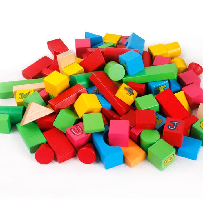 ✨Đồ chơi xếp hình 100 khối gỗ nhiều hình dạng, màu sắc