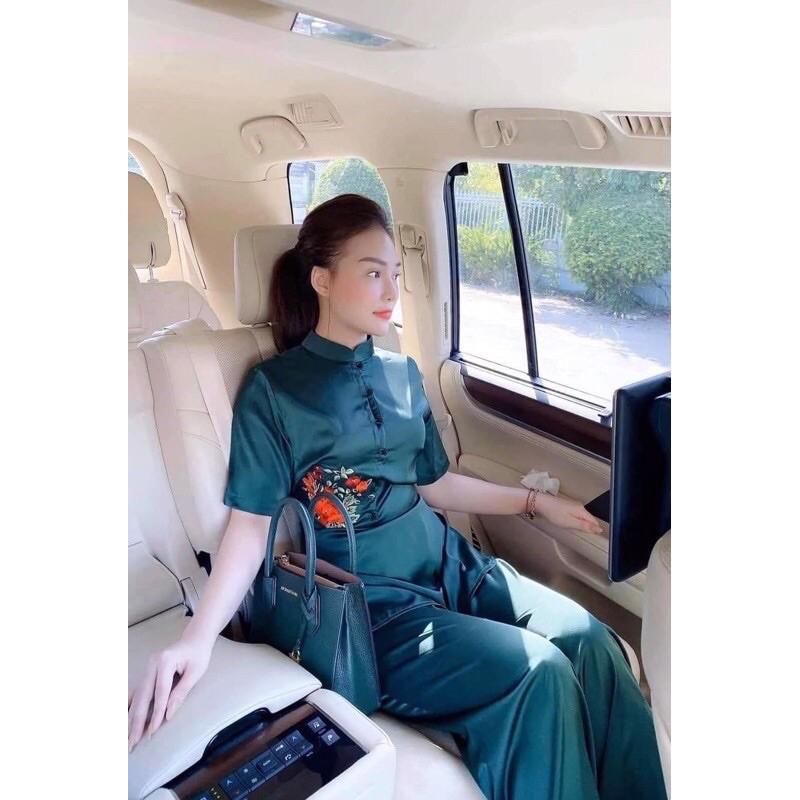 LỤA SEN SANG TRỌNG Chất liệu vải lụa cao cấp mềm mướt_ không xổ lông _ dày dặn kiểu dáng đơn giản, thanh lịch kết hợp quần ống rộng tạo nên sự sang trọng Sản