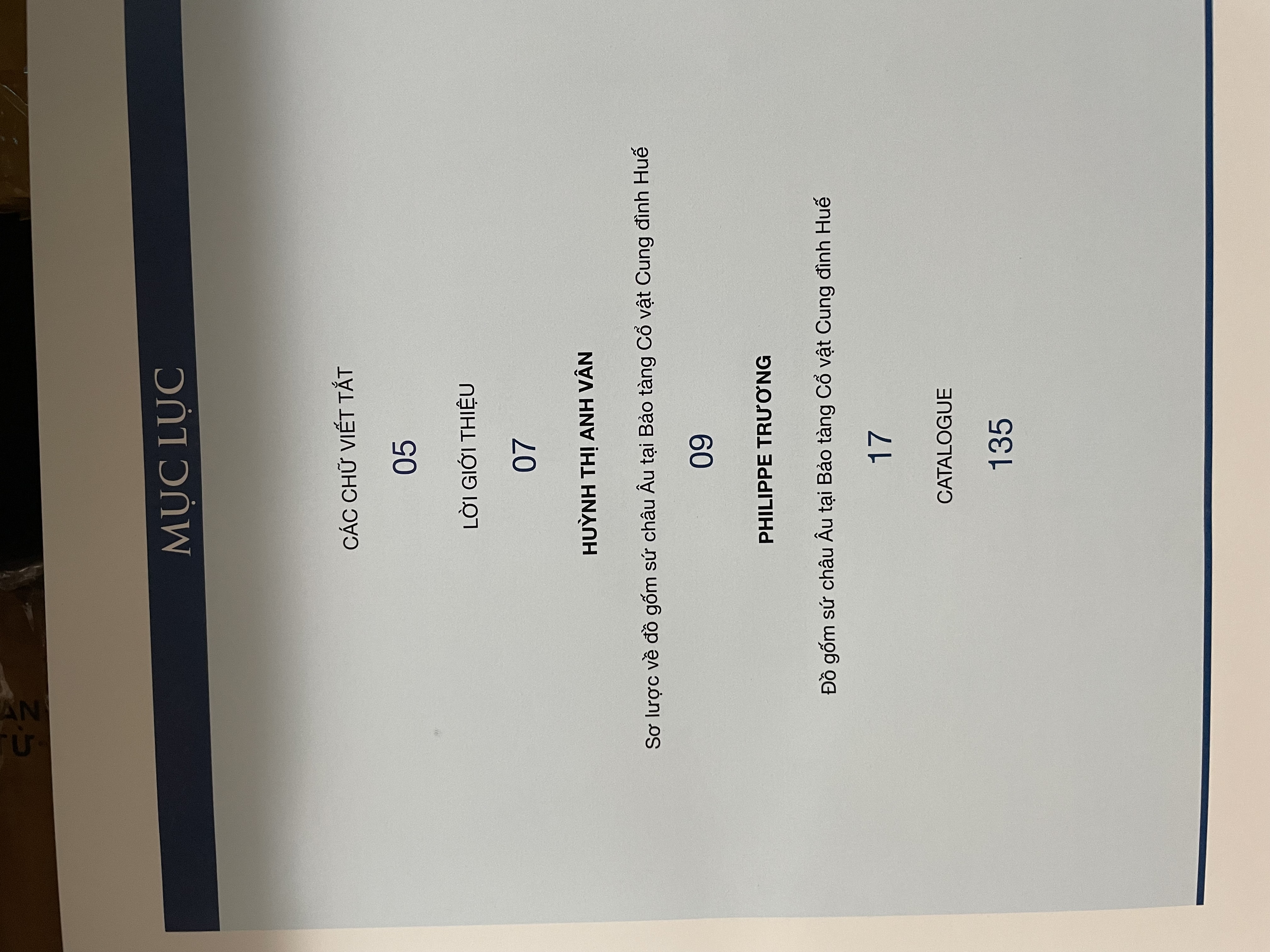 Đồ Gốm Sứ Châu ÂuĐể tiếp cận văn hóa cung đình Huế qua góc nhìn cổ vật, tiếp nối các chuyên đề về sưu tập hiện vật bảo tàng, sách Bảo tàng cổ vật cung đình Huế, tập IX, chuyên đề “Đồ gốm sứ Châu Âu tạ...