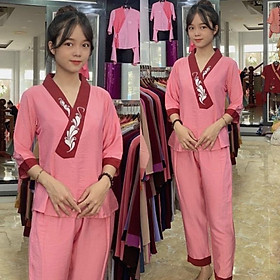 Mẫu pháp phục nữ - quần áo Phật tử đi chùa, đồ lam chất kate lụa mềm có co giãn Sen Hồng 0898553583