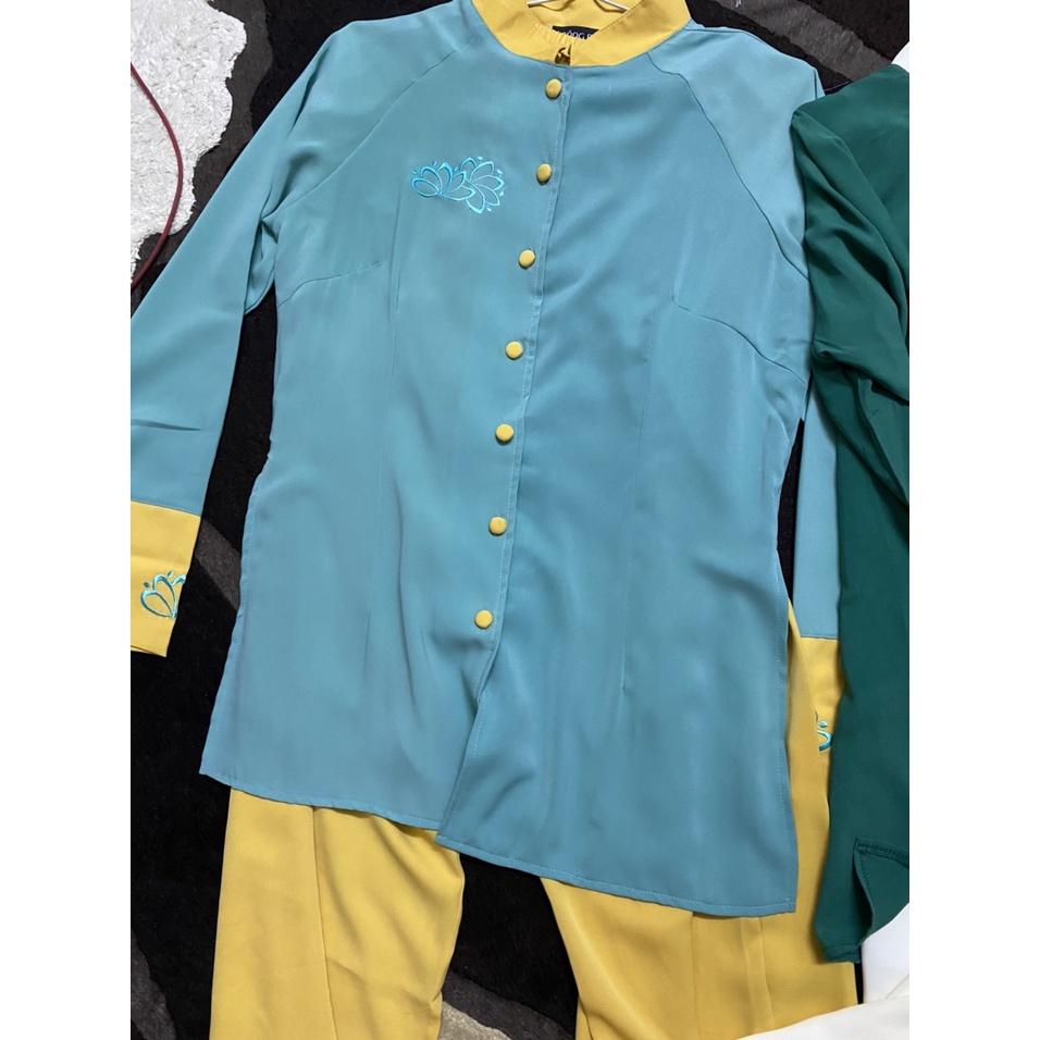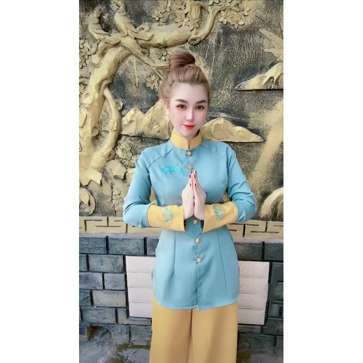 ✨Đồ Lam Đi Chùa Cao Cấp # Phối 2 Màu Thêu Hoa Sen