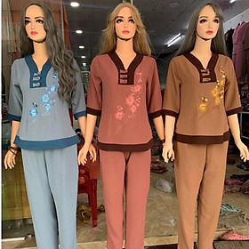Đồ bộ đi chùa vải đủi vân may thêu hoa sen và chữ An