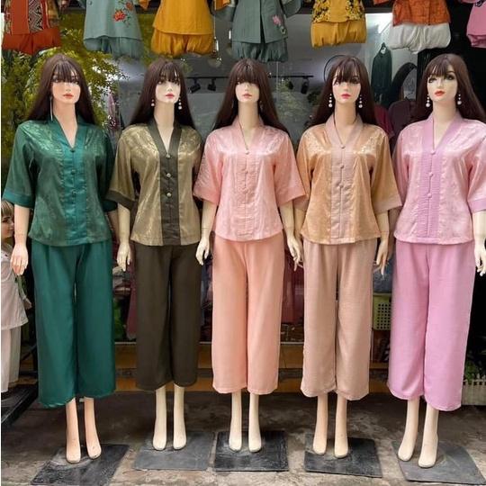 Chất Vải Lụa Pháp Phối Gấm Cao Cấp Hoặc Vải Lụa Phối Gấm Tuỳ Màu Và Size Nên Chất Vải Khác Nhau Quần Ống Rộng Cổ Áo Chui Không Cài Nút BÁN LẺ GIÁ SỈ