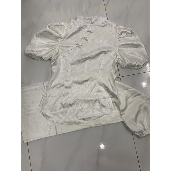 Quần áo phật tử, đồ lam đi chùa mẫu gấm xẻ tà #fashion #quanaophattu