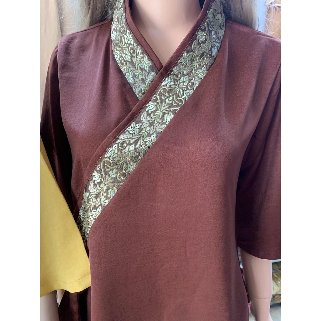 Quần áo phật tử, đồ lam đi chùa mẫu gấm xẻ tà #quanaophattu #fashion