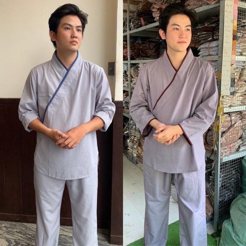 Quần áo cư sĩ nam - đồ lam đi chùa Phật tử nam - pháp phục Sen Hồng