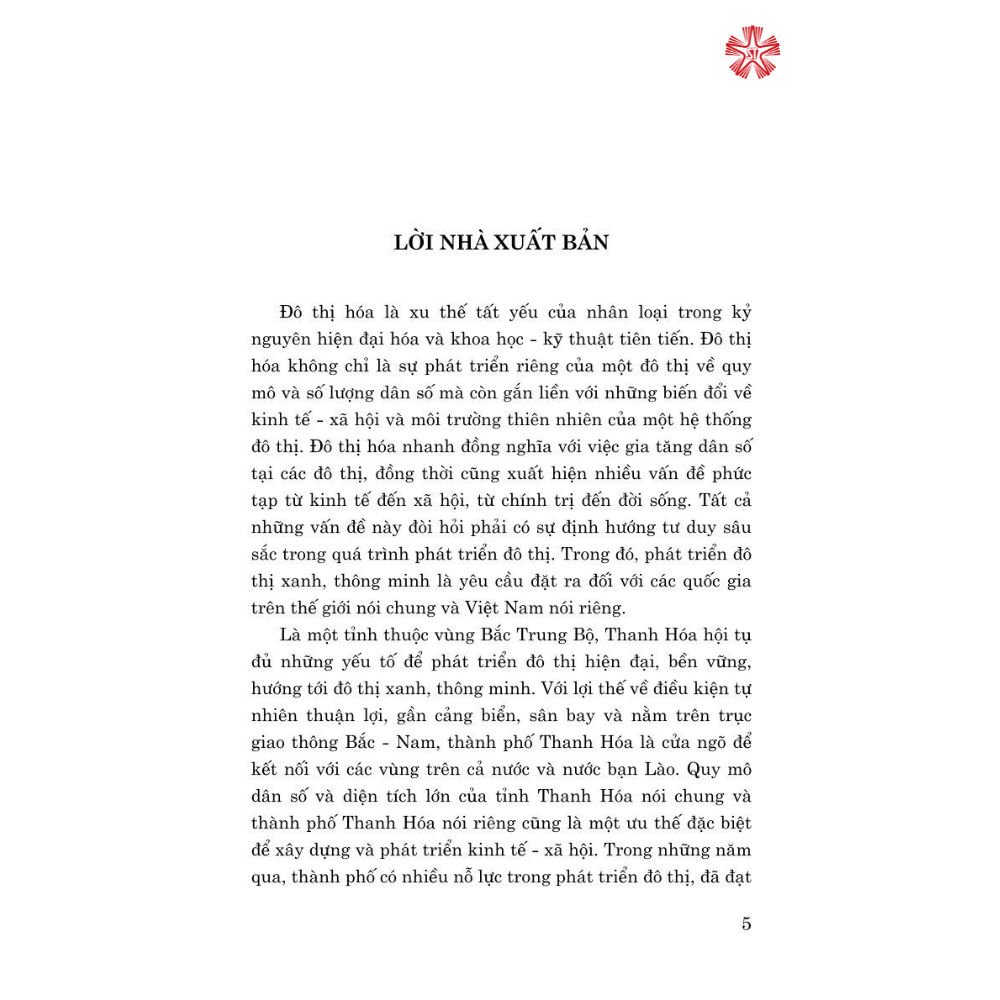 Mua tại TiktokCuốn sách Đô thị xanh, thông minh (từ thực tiễn thành phố Thanh Hóa), góp phần cung cấp tài liệu tham khảo cho bạn đọc tìm hiểu về vấn đề xây dựng đô thị xanh, thông minh từ thực tiễn thành phố Thanh Hóa. Nội dung cuốn sách hệ thống hóa các vấn đề liên quan đến đô thị, cơ sở khoa học và kinh nghiệm thực tiễn về phát triển thành phố hiện đại, bền vững, hướng tới đô thị xanh, thông minh, phân tích thực trạng phát triển của thành phố Thanh Hóa, đồng thời đưa ra định hướng và giải pháp phát triển thành phố Thanh Hóa hiện đại, bền vững, hướng tới đô thị xanh, thông minh.