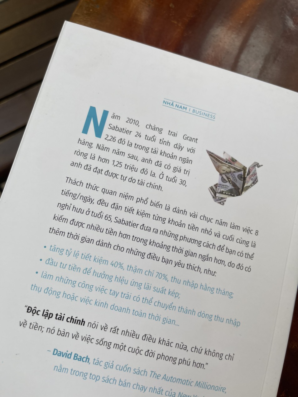 Năm 2010, chàng trai Grant Sabatier 24 tuổi tỉnh dậy với 2,26 đô la trong tài khoản ngân hàng. Năm năm sau, anh đã có giá trị ròng là hơn 1,25 triệu đô la. Ở tuổi 30, anh đã đạt được tự do tài chính.