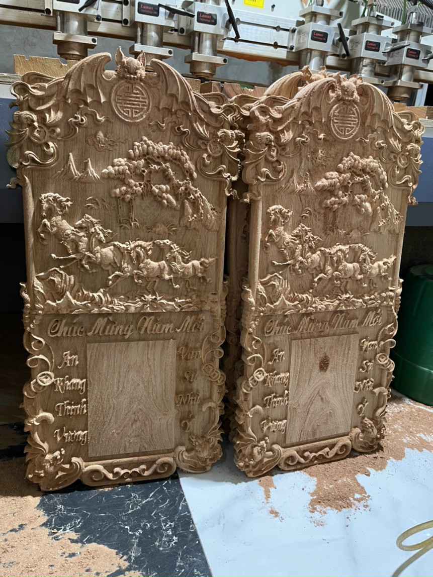 _ Tranh cánh quạt khắc tích mã đáo thành công được làm bằng chất chất liệu gỗ hương đỏ tự nhiên 100% _ Kt 50×100 dầy 4cm _ Tranh được khắc nổi tỉ mỉ ,tinh