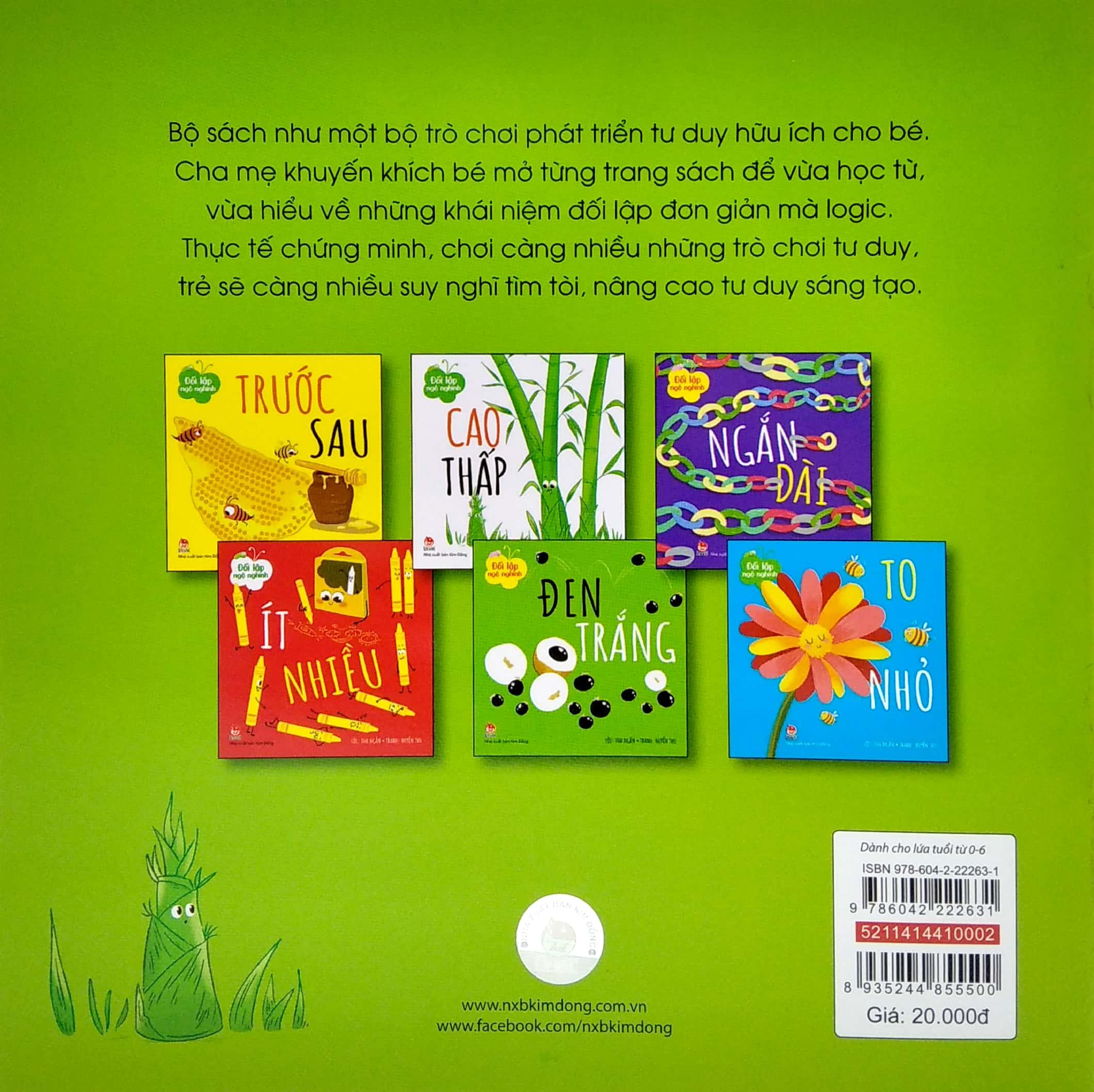 Mua tại TiktokBộ sách như một bộ trò chơi phát triển tư duy hữu ích cho bé. Cha mẹ khuyến khích bé mở từng trang sách để vừa học từ, vừa hiểu về những khái niệm đối lập đơn giản mà logic. Thực tế chứng minh, chơi càng nhiều những trò chơi tư duy, trẻ sẽ càng nhiều suy nghĩ tìm tòi, nâng cao tư duy sáng tạo.