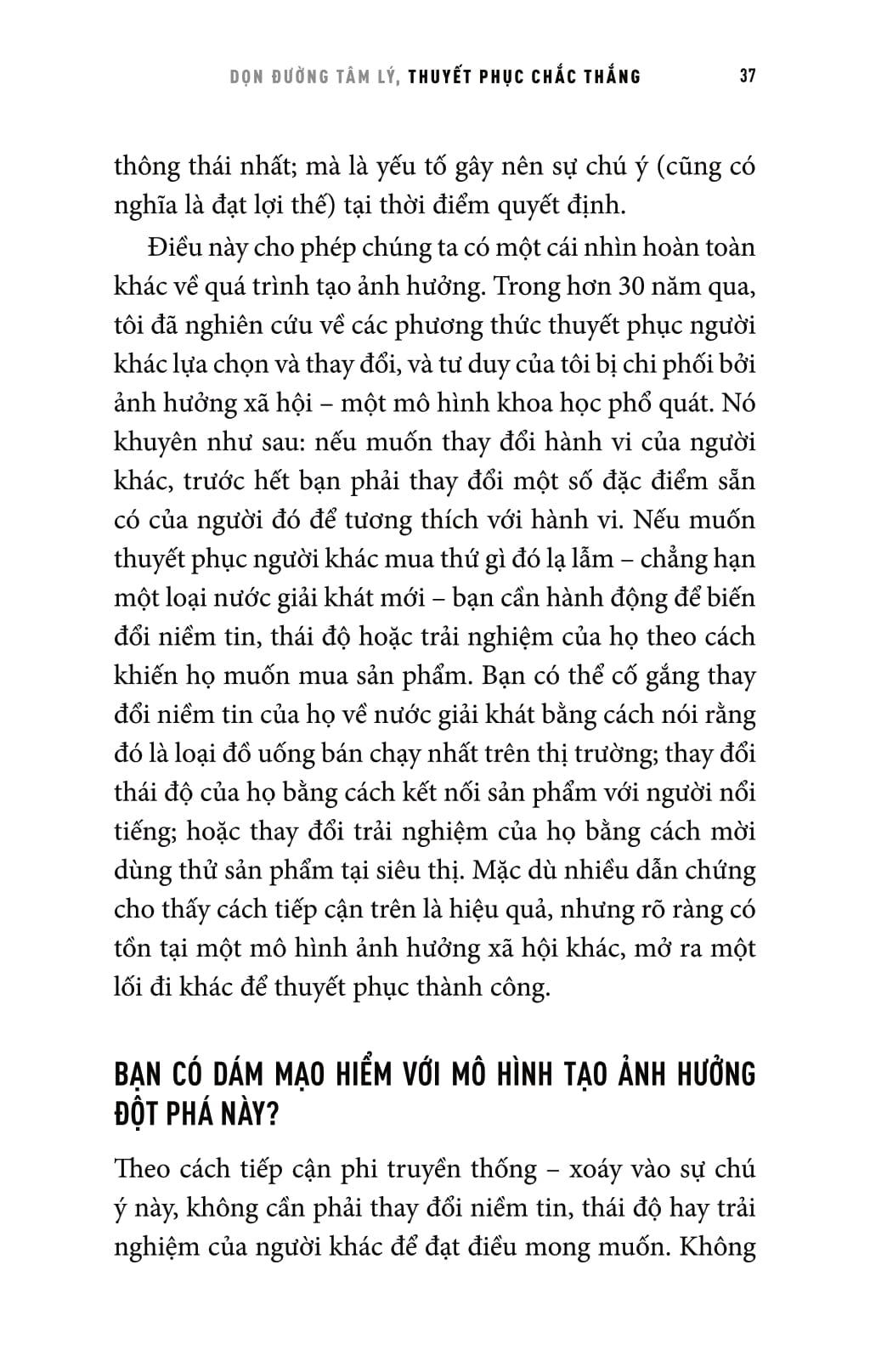 Mua tại TiktokĐiều gì làm nên sự khác biệt giữa một người giỏi giao tiếp và một người giỏi thuyết phục? Tác giả sách bán chạy Robert Cialdini, đồng thời là nhà tâm lý học được trích dẫn nhiều nhất trong thời đại chúng ta, đã giải thích tường tận trong "Dọn đường tâm lý, thuyết phục chắc thắng" về cách chuẩn bị và dẫn dắt người nghe trước khi truyền tải thông điệp đến họ và rồi thành công trong việc thuyết phục họ, với những kỹ năng chi tiết – những “chiến lược kinh doanh dựa trên cơ sở khoa học” - có thể dễ dàng được áp dụng trong các chiến dịch tiếp thị số hiện đại. Sách được Financial Times vinh danh là đầu sách kinh tế hay nhất năm 2016.