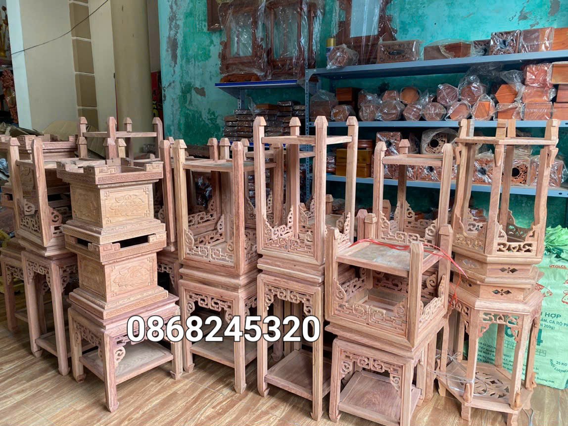 Cặp bàn thờ gỗ hương đá lên màu giữ vân tự nhiên #dogoquoctrung #angiantho #banthogiatien