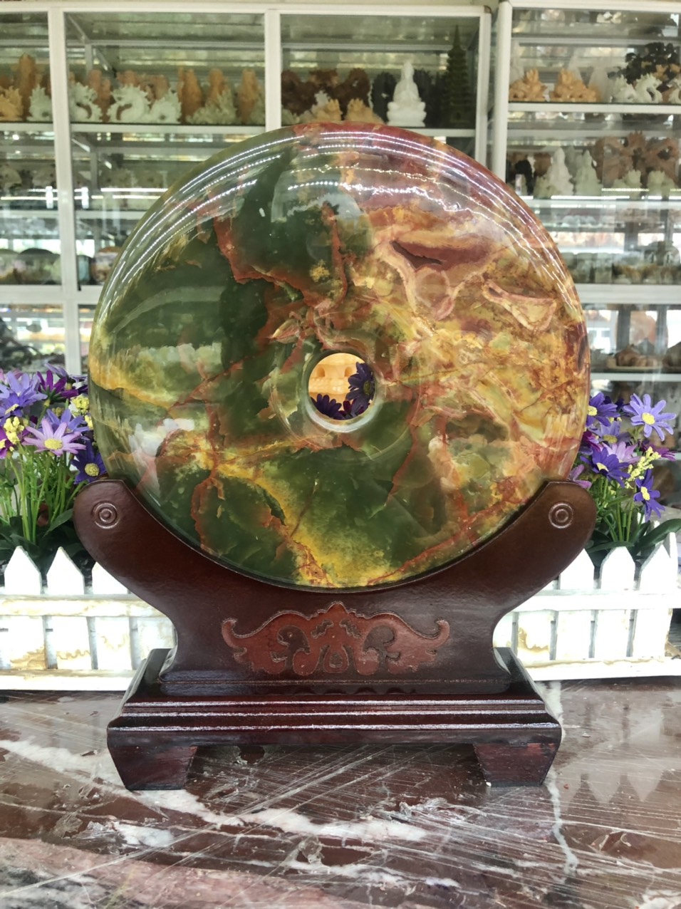 ✨Đồng điếu (đồng tiền ) phong thủy đá ngọc Onyx xanh đậm - Đường kính 26 cm