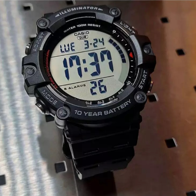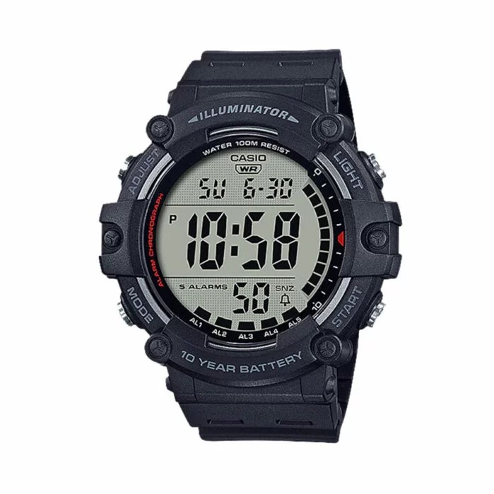 Mẫu Casio AE-1500WH-1AVDF phiên bản mới mặt số tròn lớn điện tử hiện thị đa chức năng giúp người đeo dễ quan sát, khả năng chịu nước lên đến 10atm.