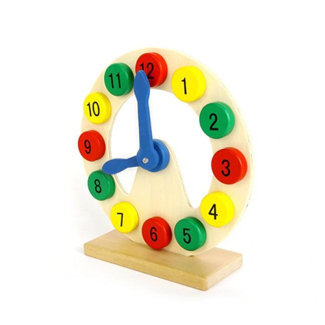 Gỗ bền, không góc cạnh, an toàn với trẻ. Màu sắc bắt mắt, kim đồng hồ dễ quay, giúp bé thích thú học giờ. Có thể làm đồ trang trí. Đường kính sản phẩm 20cm