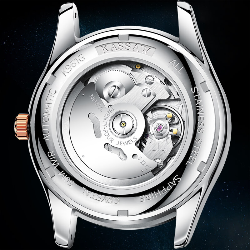 Mua tại TiktokĐồng hồ nam chính hãng Kassaw Thụy Sỹ Thiết kế sang trọng, đẳng cấp cho quý ông Thời gian trữ cót lâu lên đến 40h Chống nước 5ATM, Kính sapphire Toàn bộ máy được làm từ thép không gỉ 316L Đồng hồ cơ Automatic, Sử dụng bộ máy Seiko NH35A Chính hãng