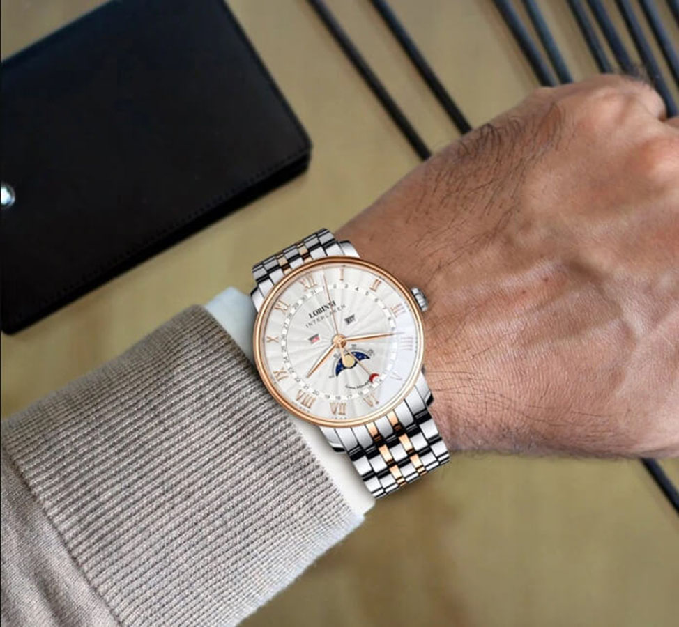 Lobinni No.3604 không chỉ hỗ trợ người dùng ở việc xem thời gian cơ bản mà còn trang bị thêm nhiều chức năng như lịch thứ, lịch ngày, lịch moon phase