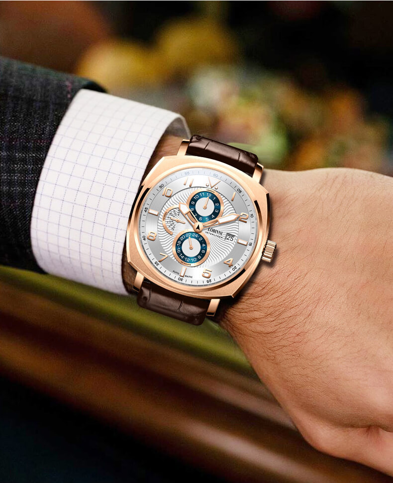 Đồng hồ nam chính hãng LOBINNI Thụy Sỹ Thiết kế sang trọng, đẳng cấp cho quý ông Thời gian trữ cót lâu lên đến 40h Chống nước 5ATM, Kính sapphire Toàn bộ máy được làm