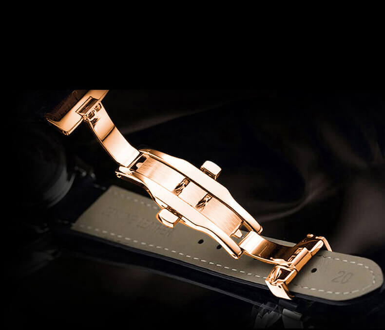 - Vật liệu vỏ / gờ: Sắc vàng kim - Dây đeo bằng da - Mặt kính khoáng - Chống nước - Giờ hiện hành thông thường Đồng hồ kim: 3 kim (giờ, phút, giây)