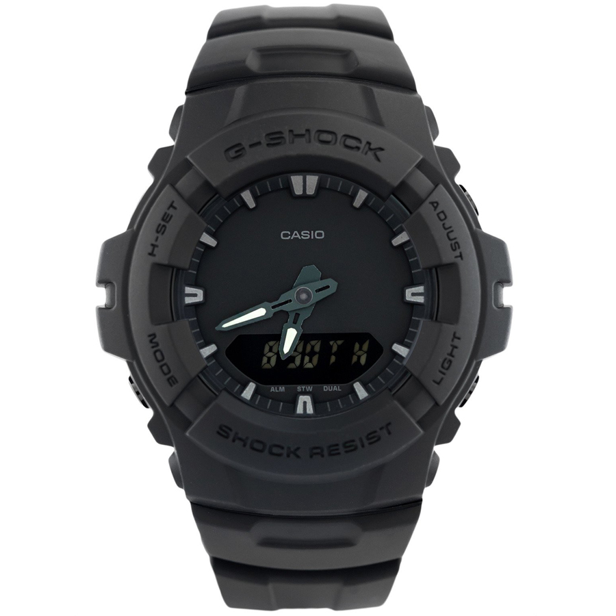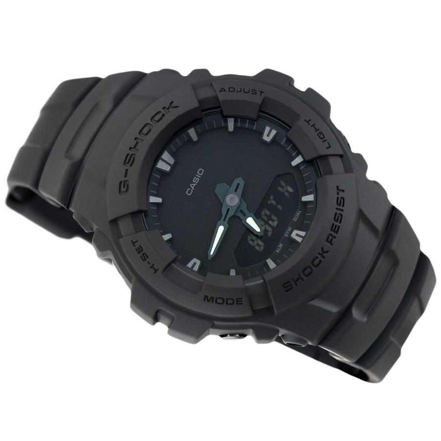 Mua tại TiktokCÁC TÍNH NĂNG Từ G-SHOCK, thương hiệu đồng hồ không ngừng đặt ra các tiêu chuẩn mới về độ bền đồng hồ hiển thị giờ hiện hành, đã phát triển các mẫu đồng hồ mới nhất bao gồm mẫu G-SHOCK màu đen cơ bản, thể hiện đặc tính cơ bản của nhựa một tông màu. Mẫu này dựa trên G-100, vốn được thiết kế để chống chịu lực tác động từ mọi hướng. Bề mặt màu đen không bóng đơn giản giúp kiểu dáng đồng hồ trở nên nổi bật, đồng thời chốt và các nút có bề mặt mạ ion màu đen. Mọi thứ về mẫu màu đen cơ bản mới này đều thể hiện các đặc tính cốt lõi của hình ảnh đồng hồ G-SHOCK cơ bản, cứng cáp, mạnh mẽ.