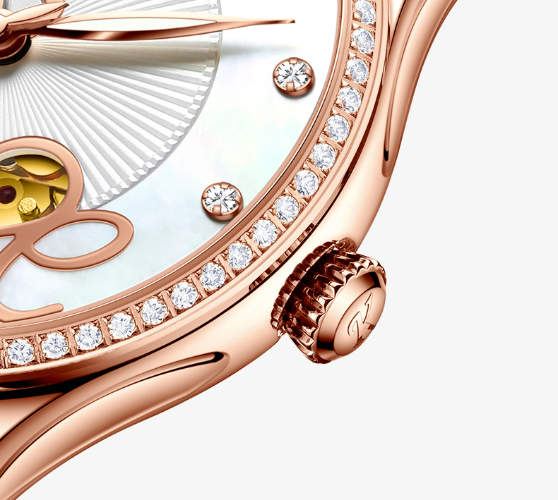 +Chiếc đồng hồ cơ Kassaw Lady Rose chắc chắn sẽ làm hài lòng các cô nàng cá tính, thanh lịch và rất biết "chơi" đồng hồ! +Thiết kế hở tim phá cách kết hợp khéo