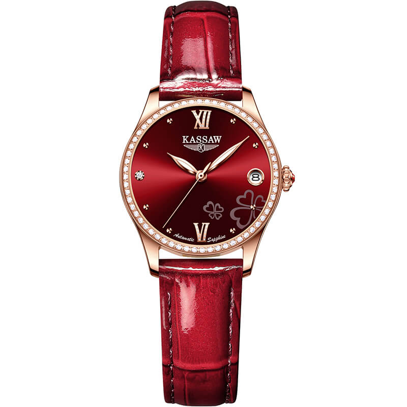 ✨Đồng hồ nữ chính hãng KASSAW K996-1 ,Fullbox, Kính sapphire ,chống xước,chống nước,mặt đỏ vỏ vàng hồng dây da, thép không gỉ 316L, Mới 100%,Bảo hành 24 tháng,thiết kế lộ cơ đơn giản,trẻ trung và sang trọng