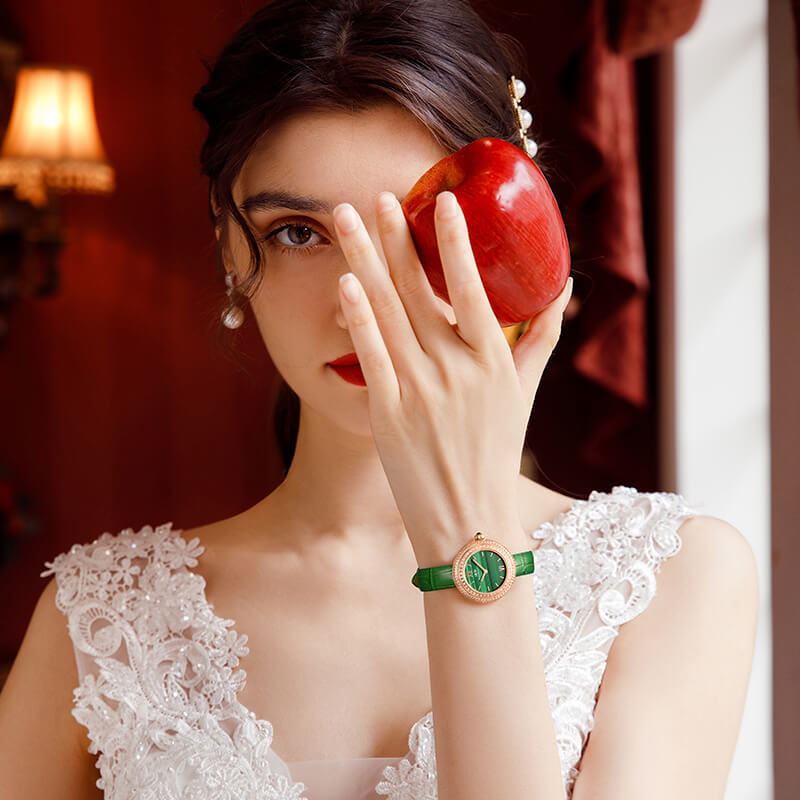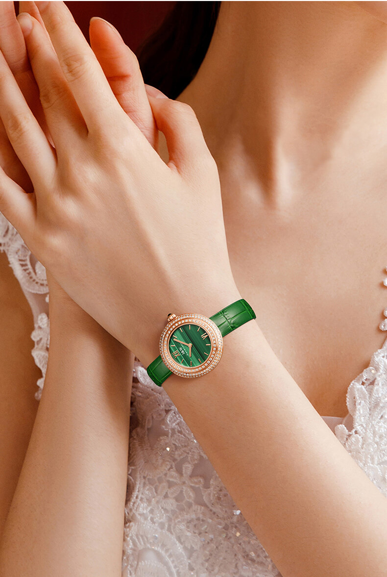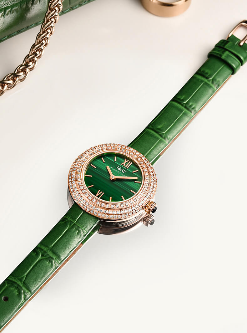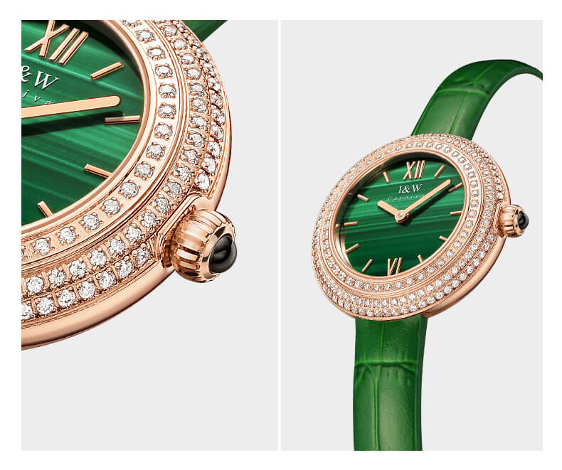 - Viền đồng hồ đính 3 vòng đá quý.
