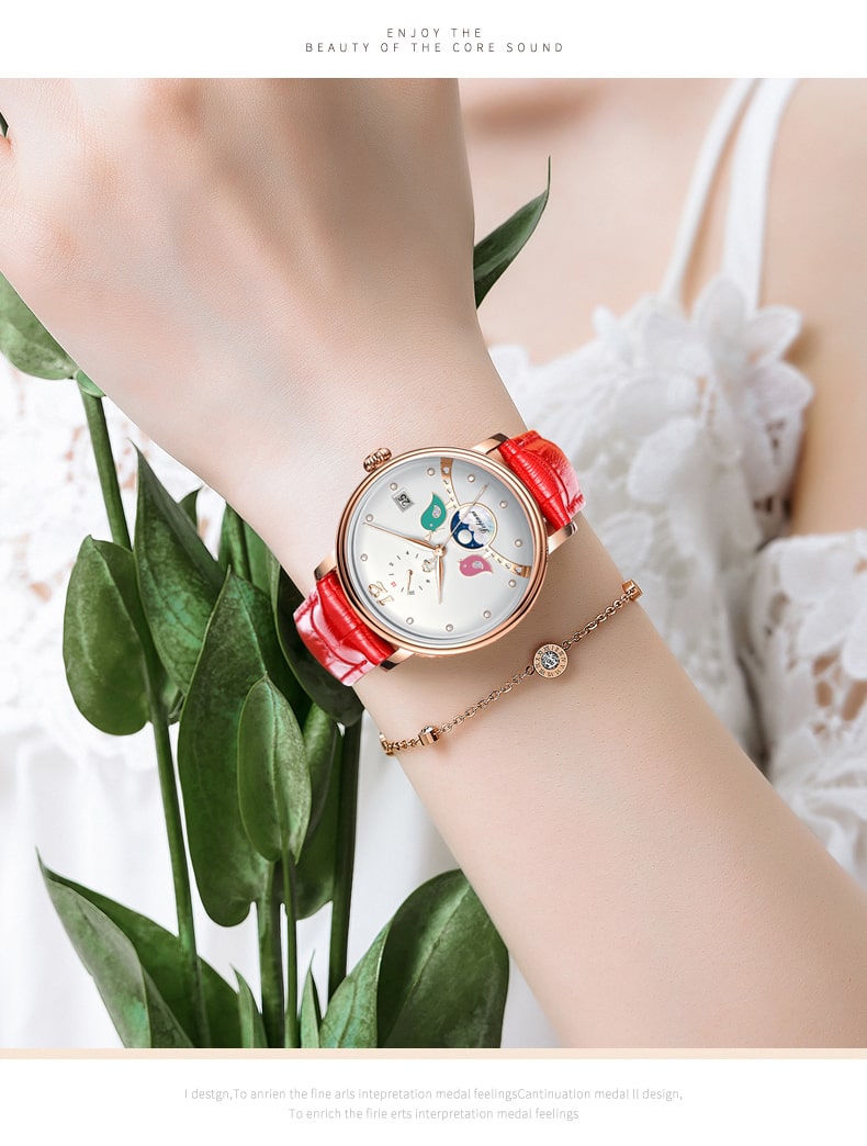 Nhãn hiệu LOBINNI Mã sản phẩm No.027-5 Giới tính Nữ Kiểu máy Đồng hồ cơ (Automatic) Đường kính mặt 36 mm Độ dày 10 mm Chất liệu vỏ Thép không gỉ 316L Chất liệu dây Dây da cao cấp Chất liệu mặt kính Sapphire