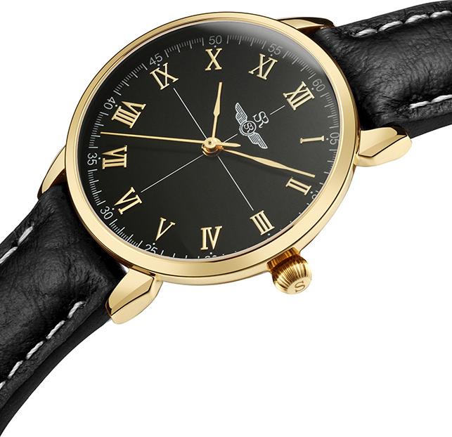 - Vật liệu vỏ / gờ: Sắc vàng kim - Dây đeo bằng da - Mặt kính khoáng - Chống nước - Giờ hiện hành thông thường Đồng hồ kim: 3 kim (giờ, phút, giây)