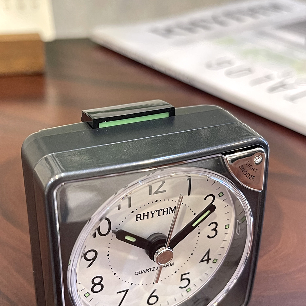 Đồng hồ báo thức Rhythm CRF801NR03 – KT:11.3 x 10.2 x 6.6cm. TRọng lượng 220g Vỏ nhựa. Dùng Pin. 2 chức năng Báo thức tiếng bíp và tiếng chuông reng, có chức năng reo lập