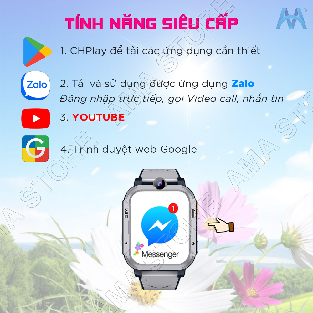 Đồng hồ Thông minh AMA Watch Y86 có CHPlay xem được Youtube có Zalo Gắn sim 4G Định vị Kép GPS Wifi cho Trẻ em cấp 1 2 Đối với bất