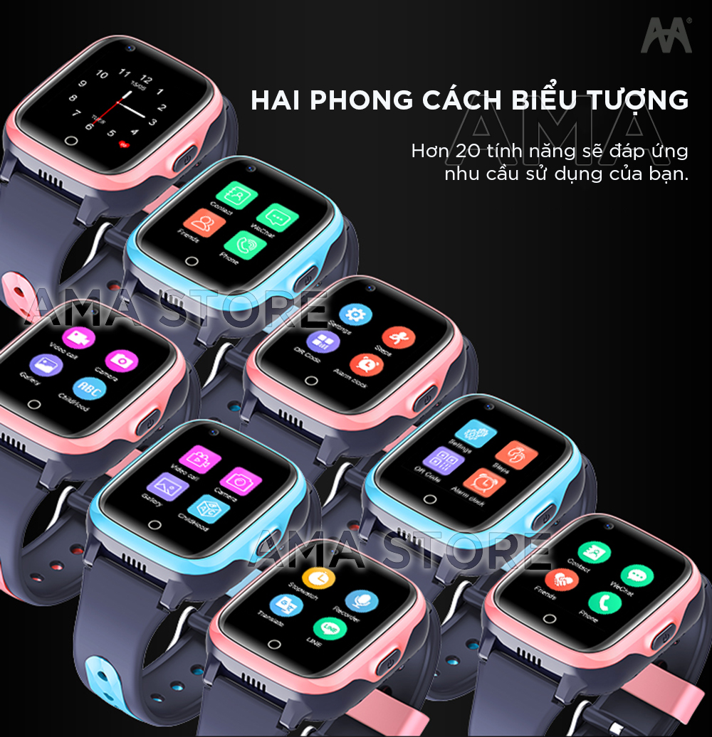 Đồng hồ Thông minh AMA Watch Y86 có CHPlay xem được Youtube có Zalo Gắn sim 4G Định vị Kép GPS Wifi cho Trẻ em cấp 1 2 Đối với bất