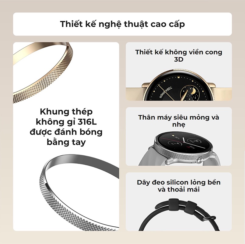 - Màn hình AMOLED 1.75” – Hiển thị sắc nét, thao tác mượt mà - Thiết kế vuông hiện đại – Thời trang, phù hợp nhiều phong cách - Theo dõi sức khỏe 24/7 –
