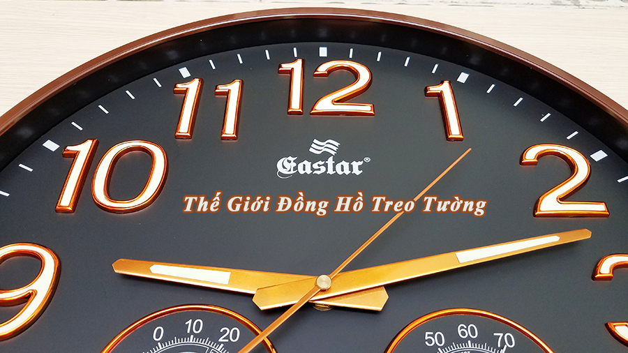 1. ĐẶC ĐIỂM NỔI BẬT: - Đồng hồ Treo tường Cao Cấp EASTAR có Dạ quang (*), máy đồng hồ Kim trôi mặt tròn Thương hiệu Gastar, đường kính 34 cm, dày 4,5 cm. -