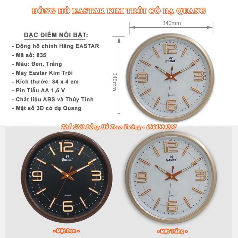 ✨Đồng Hồ Treo Tường KIM TRÔI DẠ QUANG EASTAR – Số Nổi 3D – Tặng Pin Maxell - Bảo Hành 1 Năm