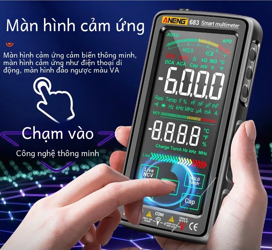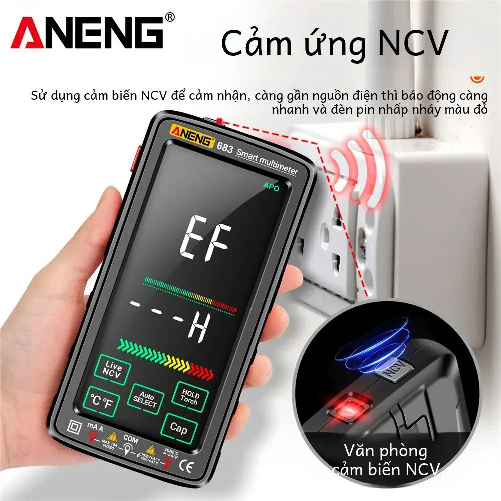 Đồng hồ đo điện tử ANENG 683 cảm ứng sử dụng pin sạc nhiều chức năng hay.