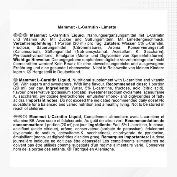 ✨Đốt mỡ tự nhiên Mammut Nutrition L Carnitine 1000ML 50 Ser