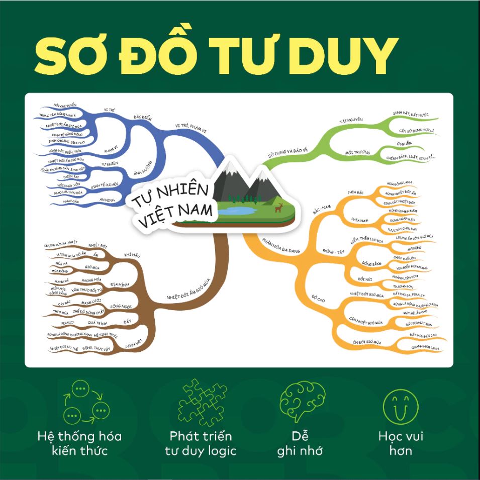Sơ đồ tư duy trong sách không chỉ giúp hệ thống hóa kiến thức Địa lí 12 mà còn kích thích khả năng tư duy sáng tạo. Bạn sẽ dễ dàng nắm bắt và kết nối các kiến thức một cách rõ ràng và mạch lạc.
