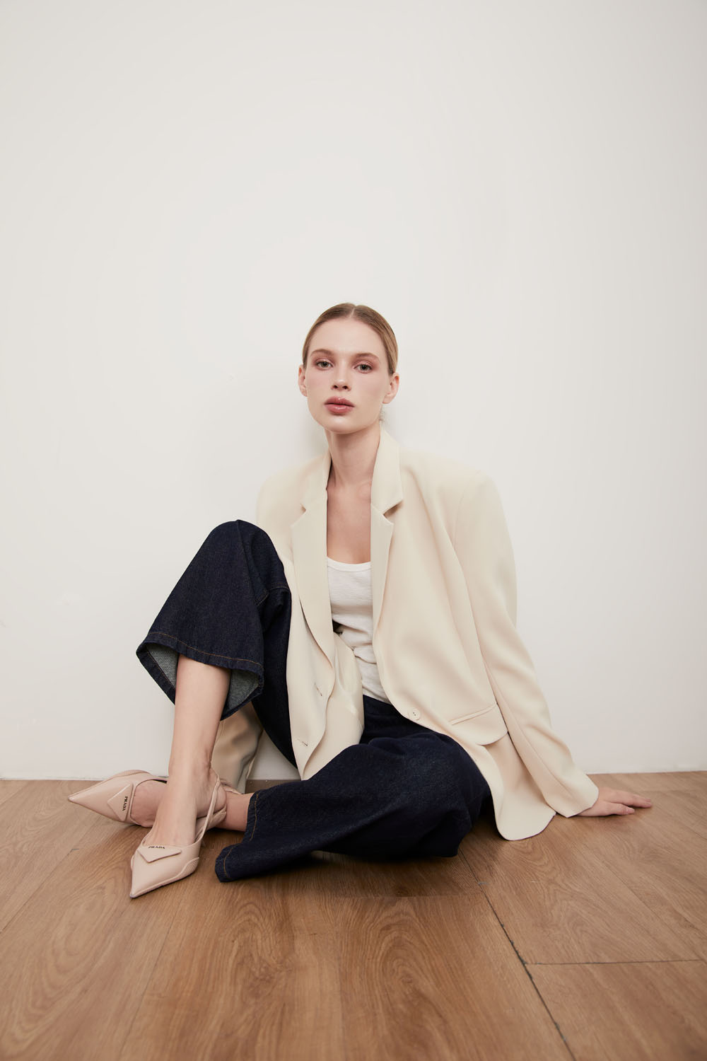 1. Mô tả INFINITY / CADEN Áo blazer dài tay, cổ sam, túi ốp tròn, cài 1 khuy, xẻ chồng thân sau 2. Thông tin chi tiết Dòng hàng: Áo khoác Chất liệu: Gabardine Màu