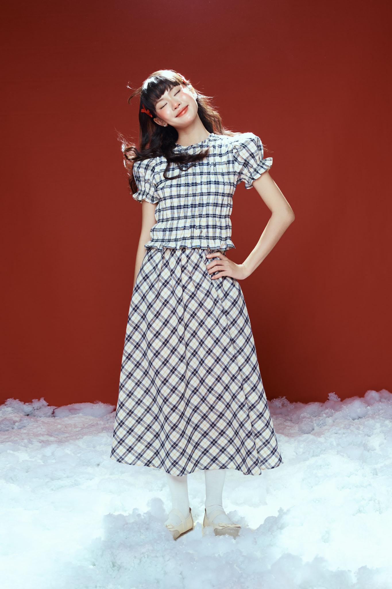 ✨DOTTIE - Chân váy midi kẻ ô - Xanh đen - S0253