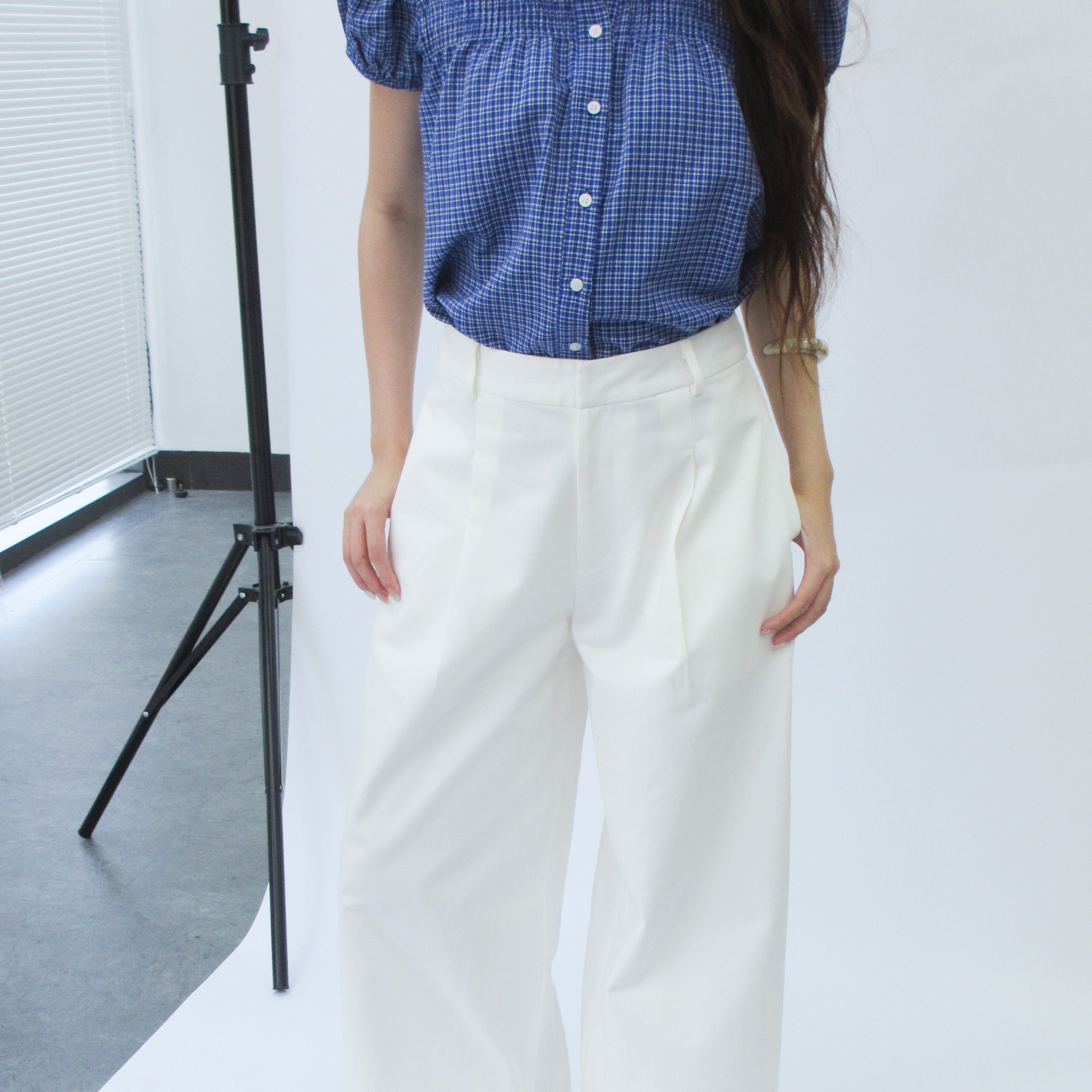 - kiểu dáng quần ống suông - lưng cao, bảng lưng 6cm, cài bằng dây khóa kéo bên hông - đặc biệt nổi bật dù trên nền trắng