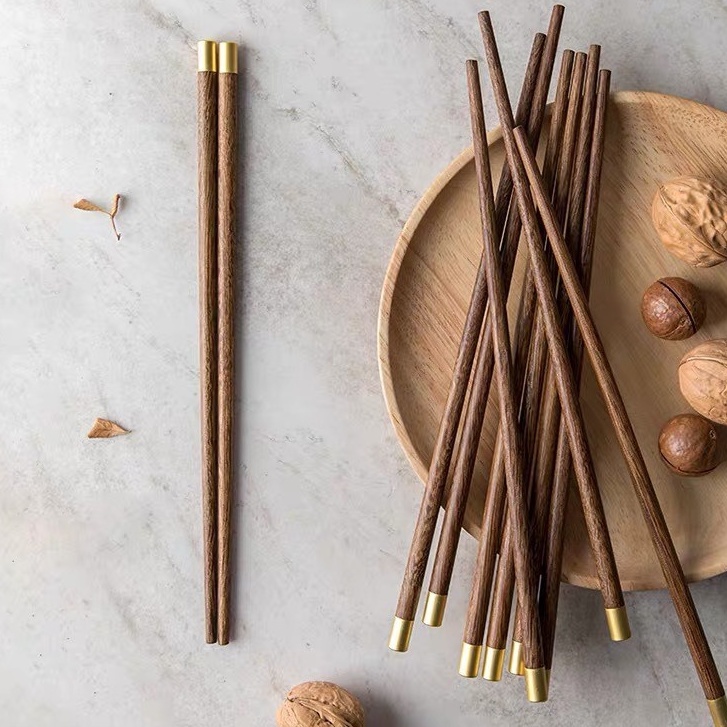 Set 10 đôi đũa Vân gỗ viền vàng sang trọng. Có thể là quà biếu tặng