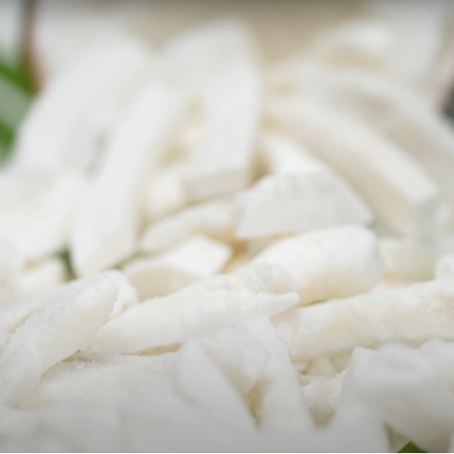 - Với nguyên liệu từ những trái dừa sáp được sấy thăng hoa với công nghệ hiện đại của Nhật Bản , sản phẩm Mứt Dừa sáp sấy khô vẫn giữ được trọn hương vị beo béo đặc trưng vốn có của dừa sáp, lượng đường thấp, đồng thời 100% dinh dưỡng có trong quả dừa sáp tươi được giữ lại sau khi chế biến. Cảm giác hoà tan dần sẽ mang lại trải nghiệm say mê khó cưỡng.