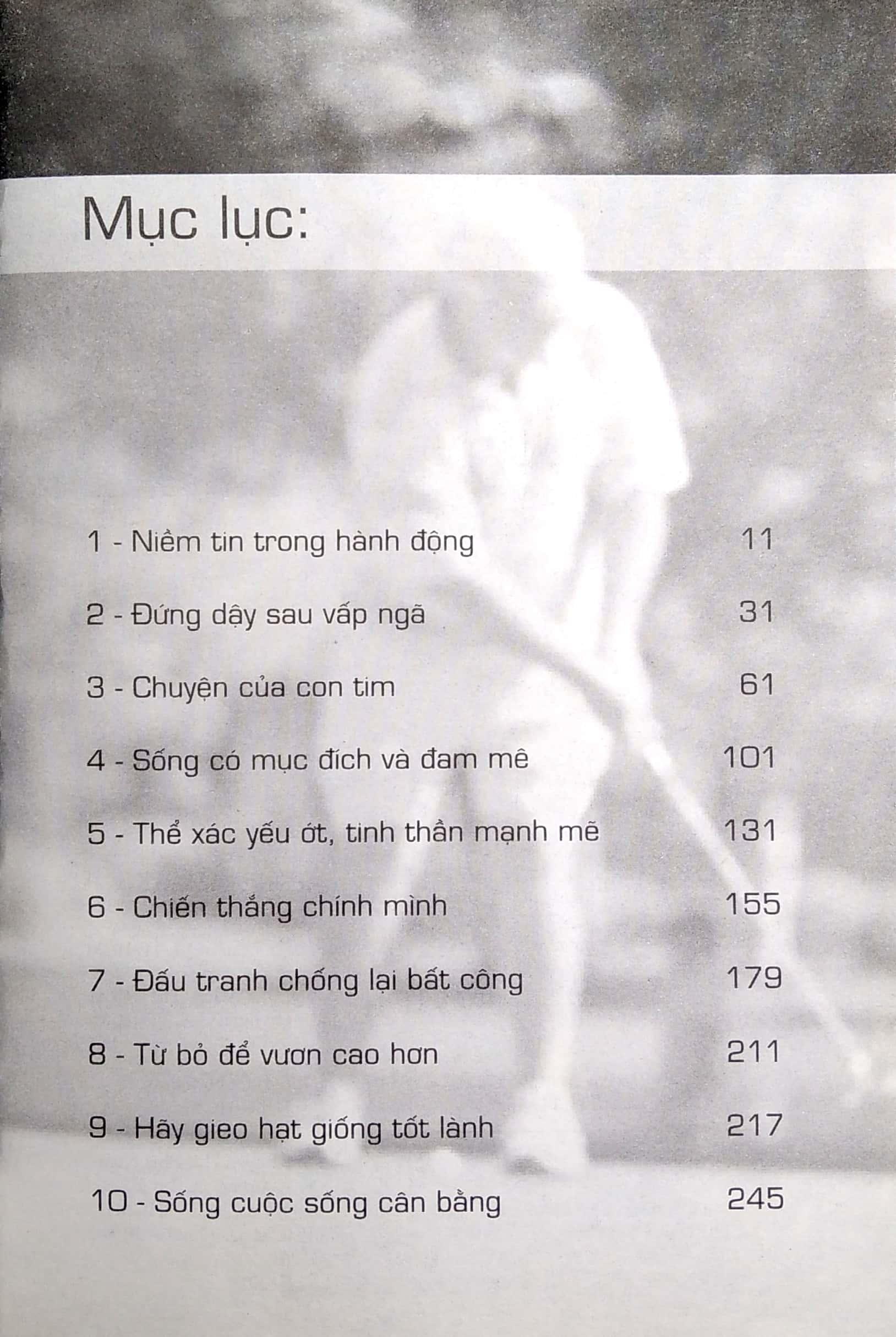 Bạn nên biết rằng chừng nào bạn còn sống trên đời này, thì còn có một mục đích, một kế hoạch dành cho bạn. Những gánh nặng mà bạn mang có thể làm bạn nản chí, nhưng như bạn sẽ thấy trong những trang sách mà bạn sắp đọc này, sức mạnh của niềm tin trong hành động thực sự rất kỳ diệu. Để bắt đầu hiểu điều này, bạn chỉ cần nhớ rằng tôi, con người không chân không tay này, đã đi khắp thế giới, đã đến được với hàng triệu người và được hưởng niềm vui cũng như tình yêu không thể đong đếm được. Tôi khiếm khuyết như bất cứ ai bạn sẽ gặp trong đời. Tôi cũng có những ngày vui vẻ, những ngày tồi tệ. Những thách thức nảy sinh trong cuộc sống đôi khi khiến tôi quỵ ngã. Tuy nhiên tôi biết rằng khi chúng ta đặt niềm tin vào hành động thì không gì có thể ngăn cản được chúng ta vươn tới một cuộc sống tốt đẹp.